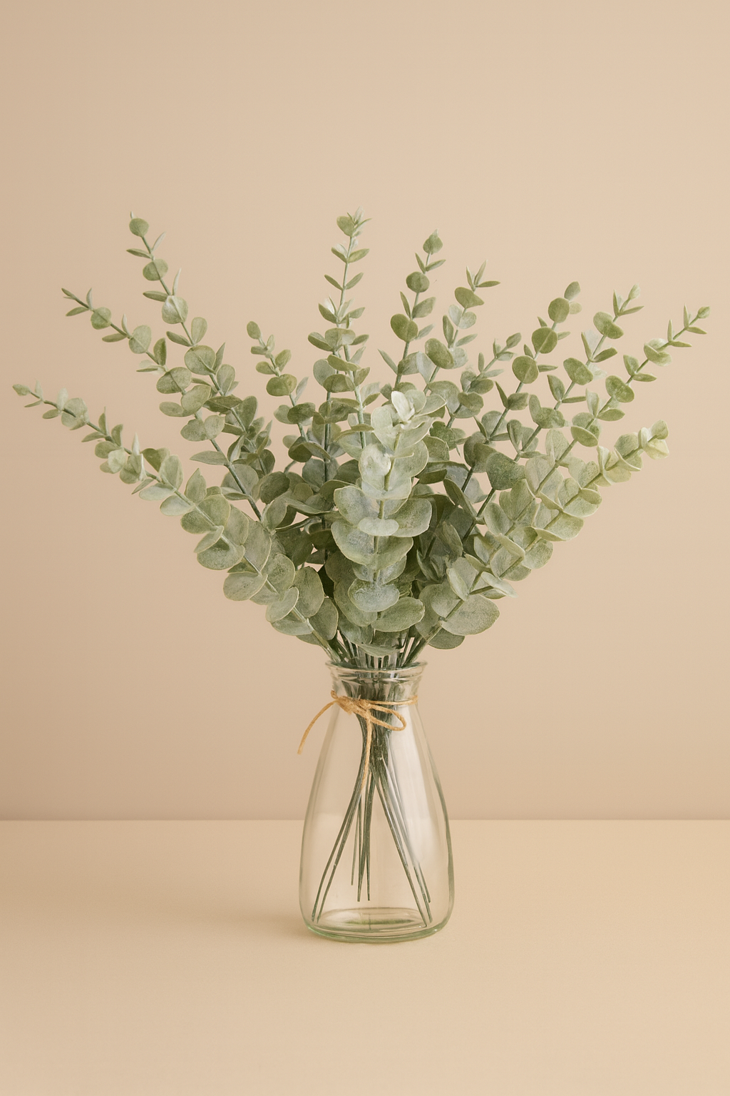 Delikatna, dekoracyjna gałązka eukaliptusa, która od razu dodaje wnętrzu spokoju i elegancji. Miękkie, okrągłe listki w stonowanej, szałwiowej zieleni pięknie prezentują się solo w wazonie, ale też jako uzupełnienie bukietów z żywych lub suszonych kwiatów. Neutralny odcień zieleni świetnie współgra z beżami, bielą, drewnem i ceramiką – dzięki temu gałązka pasuje zarówno do nowoczesnych, jak i bardziej klasycznych aranżacji. To idealny sposób, aby wprowadzić odrobinę natury bez konieczności pielęgnacji roślin.